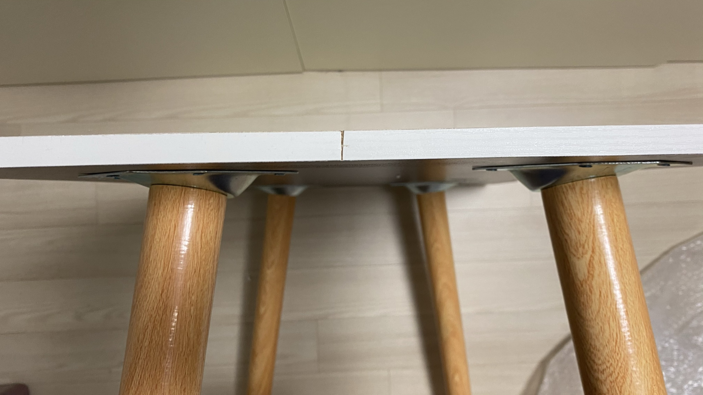 박스를 뜯고 난 후 모습입니다. 다리 발 4개와 상판이 들어있고 별도에 피스, 너트 볼트 같은 것은 없이 조립 가능한 제품이었습니다.