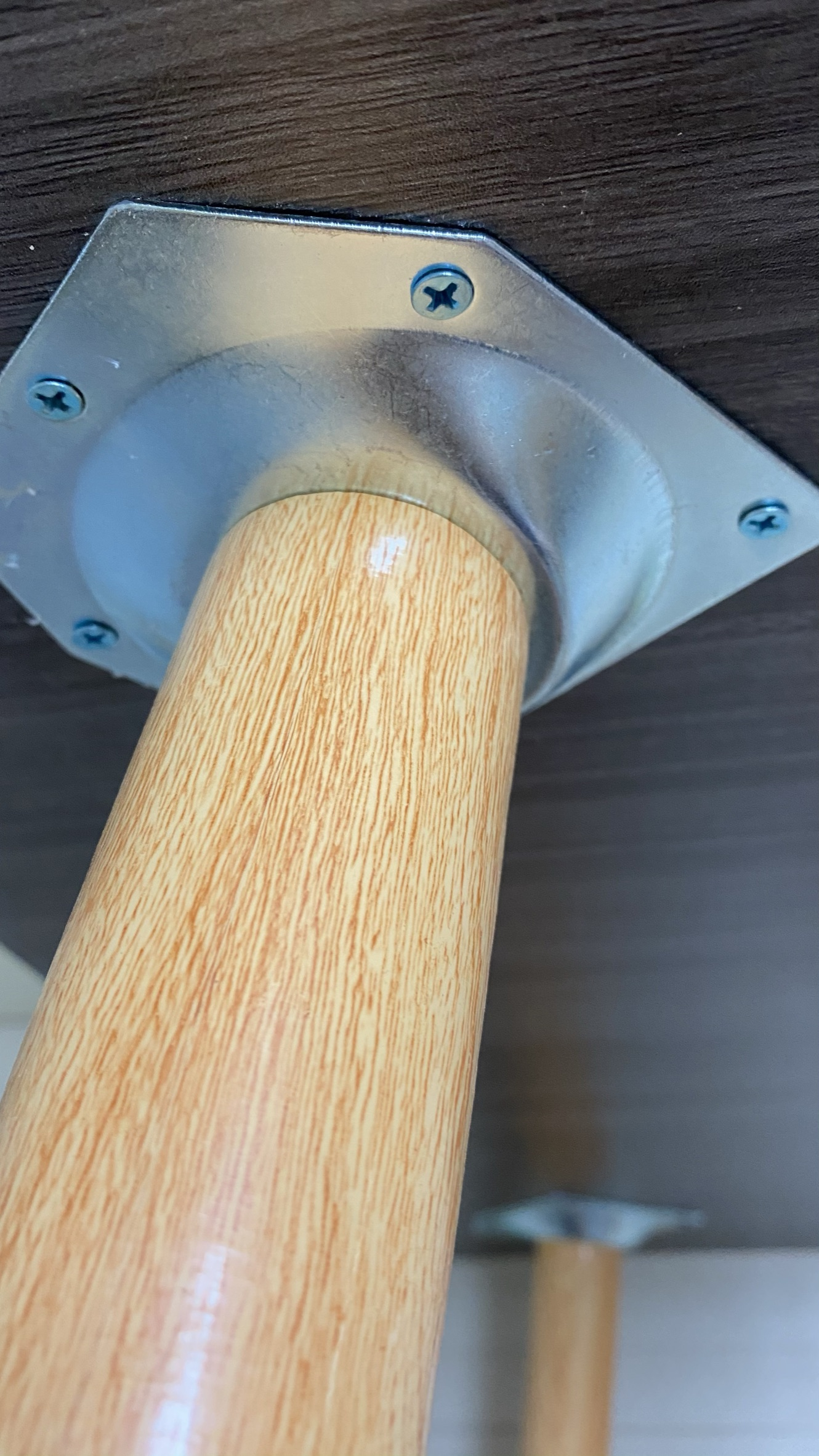 다릿발에 볼트, 책상 하단에 너트가 부착되어있어 다릿발을 돌려가며 고정시키는 방식입니다. 조립이 굉장히 쉽습니다. 상판과 다릿발도 가볍기 때문에 여성 혼자 하기에도 충분합니다.