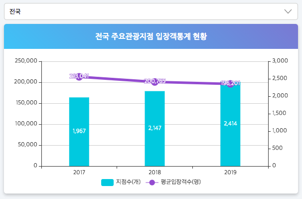 저는 이 사이트에서 제안 사업지였던 전북지역 관광지점에 대한 입장객 수치를 확인하여 제안서에 인용하였습니다. 이러한 객관적인 지표를 방향성에 근거로 주장하면 더욱 단단한 제안을 할 수 있습니다. 이렇게 보기 쉽게 정리가 잘되어있다면 마감을 앞둔 입장에서 아주 감사할 따름입니다.😆