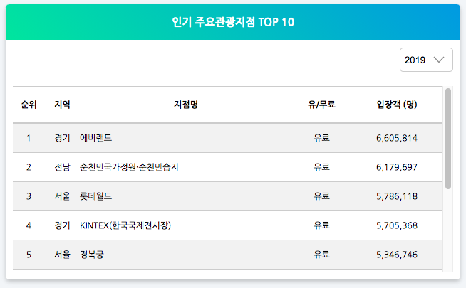 [정보의 공유-03] 전국 유명 관광지 입장객 통계를 알 수 있는 사이트