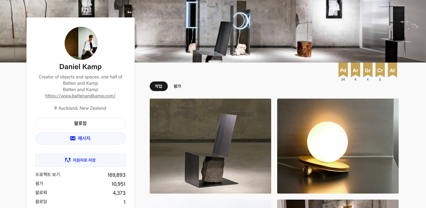 디자이너 다니엘 캠프입니다. 그는 공간, 가구, 조명 등 다양한 그의 작품은 정적이지만 강한 인상을 줍니다. 또 사용한 소재와 형태가 아주 조화로우면서 새로운 느낌을 줍니다.